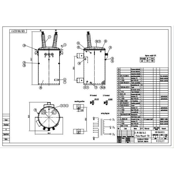 Single-phase pole-mounted transformer voltage ratings:2400V, 7200V, 124 70V , 7620V, 13200V, 13800V, 19920V, 34500V, 27600V .
